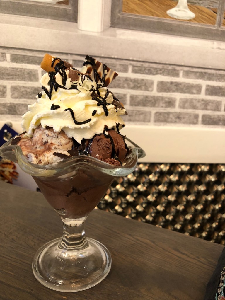To conclude our day in the Dutch countryside we took the bus back to Weesp and wandered around the streets looking for a snack and some windmills. We stopped for ice cream at Neils Ice Cream Parlor where we ordered a HUGE chocolate sundae, everything here is made fresh and the ice cream was creamy and delicious. It was generously covered in toppings. If you didn’t want chocolate they had fruity sundaes as well as regular scoops of ice cream and milkshakes. You should definitely try the stroopwafel flavor as it’s native to Holland.