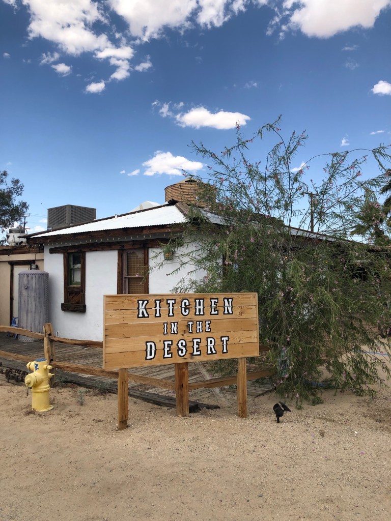 After Cabot’s, it was time for lunch. We left the Desert Hot Springs area and traveled into Joshua Tree. For lunch, we went to Kitchen in the Desert. A super cute cafe serving up some delish flavors and putting a spin on Caribbean and new American Flavors. The restaurant is in a compound built in 1947 with bright colorful buildings and lots of parking (all dirt). For lunch, we ordered sandwiches, a side of fries to share, and the cucumber cilantro lemonade which was just absolutely amazing. I ordered the roast beef sandwich. The smoky flavor of the tri-tip was out of this world and the roasted garlic aioli was outstanding. My mom’s veggie sandwich was fresh and tasty. We enjoyed the ambiance of the cafe, its cute decor, and the tasty food for a while, reveling in the air conditioning before we ventured back out for our next stop.
