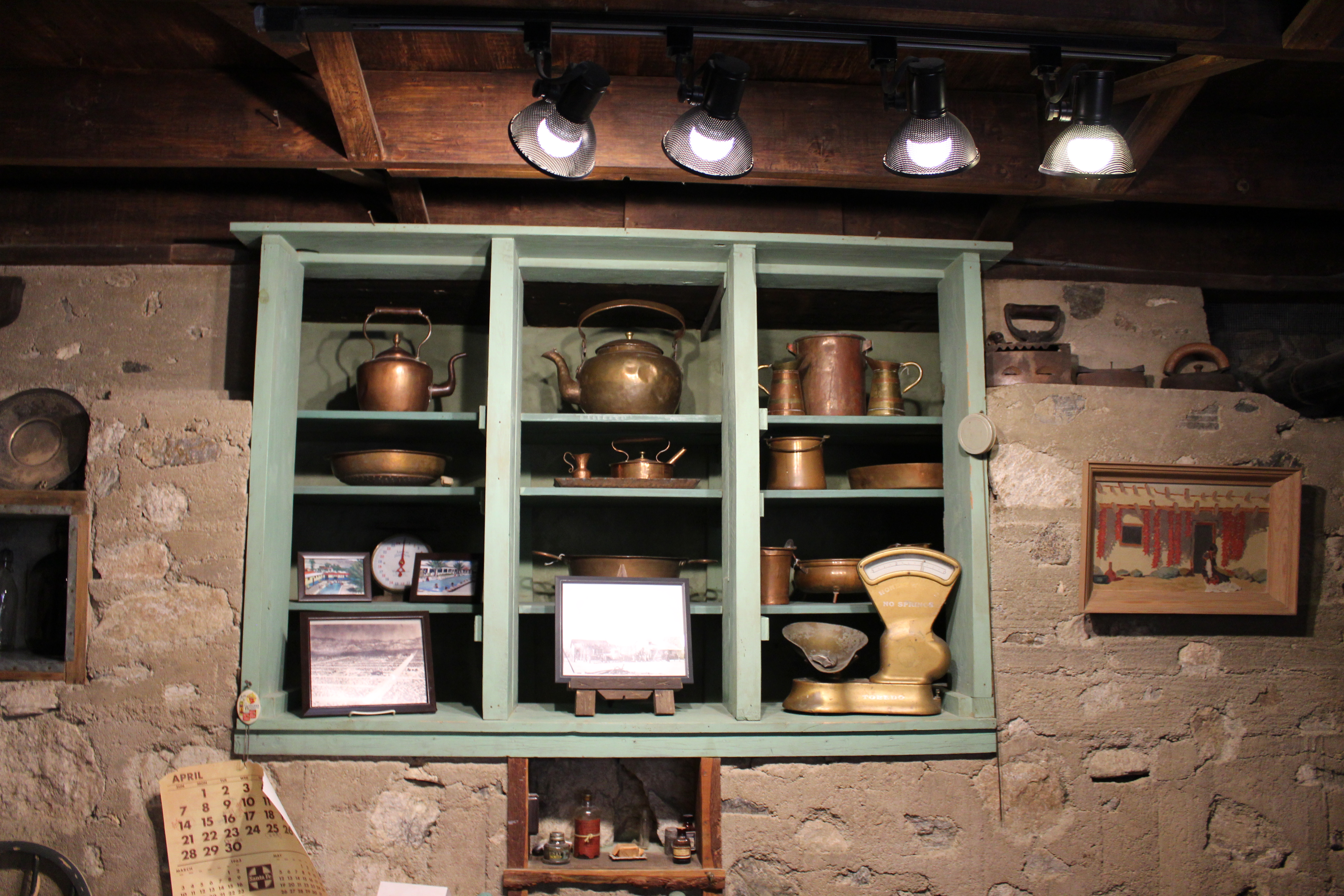 After a quick breakfast of pastries, our first stop was Cabot’s Pueblo Museum in Desert Hot springs. This funky little stop is Cabot Yerxa’s home in the California desert. In 1941 Cabot began to build the pueblo using salvaged items he found in the surrounding desert. On the property, he discovered two natural springs, one hot and one cold, and he named the property, ‘Miracle Hill’. My mom and I arrived at the Pueblo and bought our tickets for a tour of the museum. Our docent taught us all about the history of the area, Cabot Yerxa, and the property itself. We got to view several of the rooms on the property and learn about the ingenious ways people would keep cool, store things and connect with the community around them.