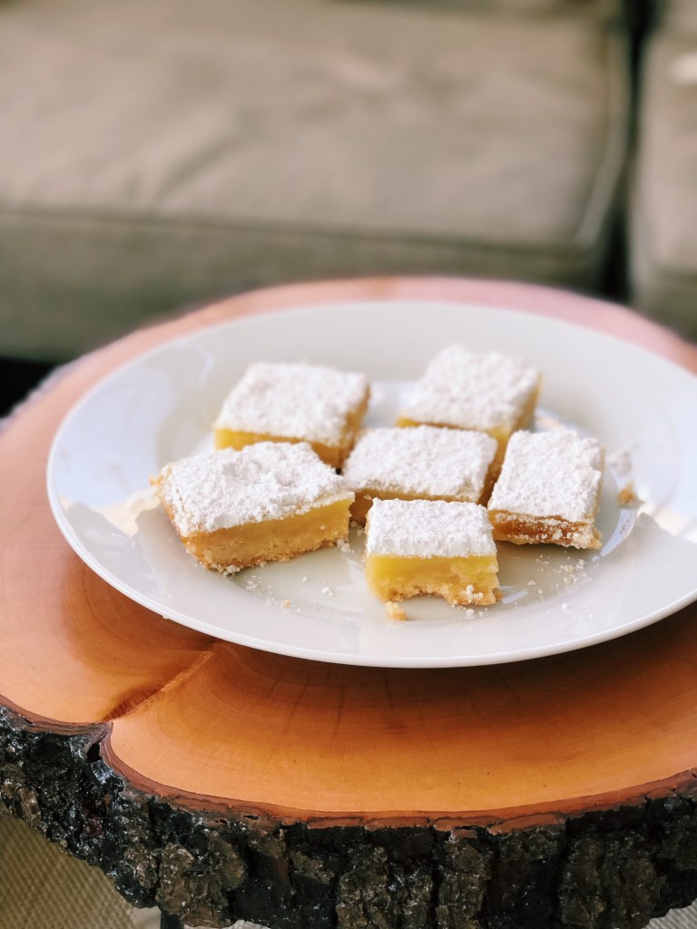 I love baking, duh. Honestly this part of the challenge has been an excuse for me to get back into baking and cooking and it’s worked. This month I made some lemon bars. They were incredibly simple to make and they were SO tasty. I learned the hard way not to top them with sugar and then put them in the fridge, the sugar will melt, instead wait until you are going to serve them and then pop them in the fridge! The lemon bars were super tasty. I gave some to our neighbors and their son, who ate the whole plate, wrote me a thank you note. It was so sweet!