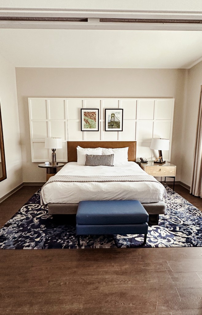 The recently renovated hotel includes a beautiful fitness center with Peloton bikes and a Lululemon Mirror, complimentary bike rentals, and in-room dining. It features a selection of room styles, but the one-bedroom suite is my favorite. With a large living room, a beautiful bathroom, and a king-size bed, there is no shortage of space to relax, unwind, and read a few pages from a book.